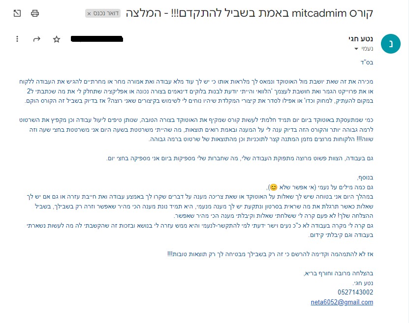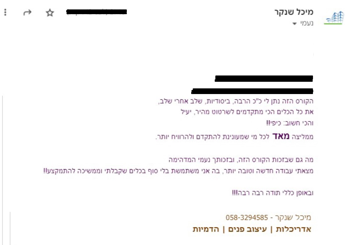תוכלי גם לקבל ממני המלצה כתובה אם תצטרכי!!