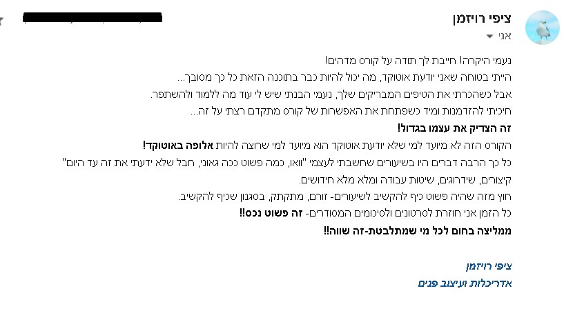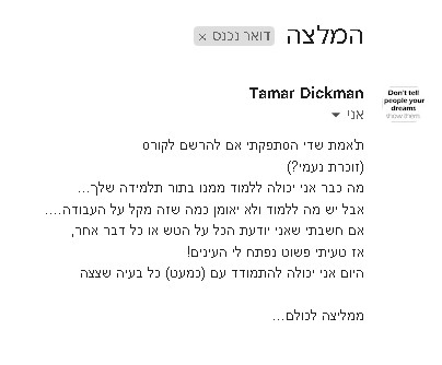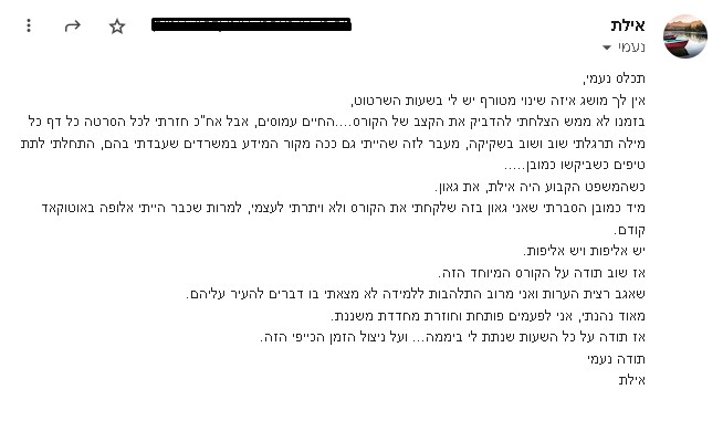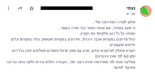 [חייבת גילוי נאות- אני עונה לכל מי ששואלת גם אם לא נרשמת לקורס שלי..]