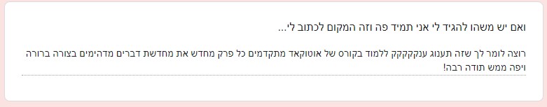 5. רגע, ושכחתי להגיד... אם את לומדת ברצינות ועוברת את השאלונים בסוף כל שיעור בהצלחה,
