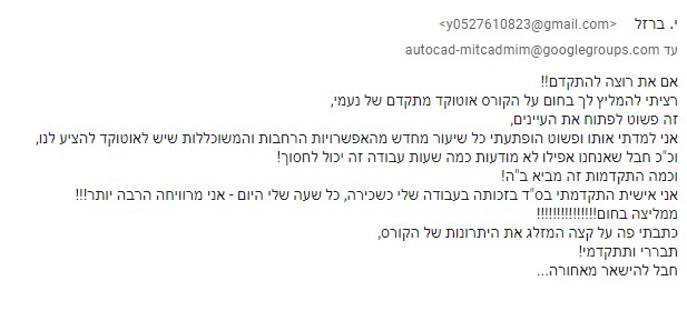 אני יספר שכבר תיווכתי תלמידות מהפיילוט של הקורס הזה להיות מורות מעולות לאוטוקד מתקדם.